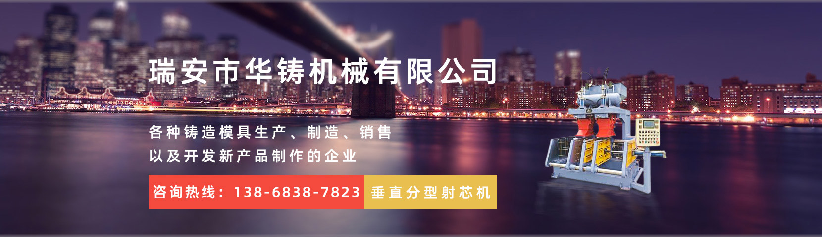 瑞安市華鑄機(jī)械有限公司,創(chuàng)建于2014年,位于經(jīng)濟(jì)發(fā)達(dá)的機(jī)械制造基地——溫州。本公司是一家致力于全自動(dòng)重力澆鑄機(jī)、射芯機(jī)殼芯機(jī)、覆膜砂設(shè)備、各種鑄造模具生產(chǎn)、制造、銷(xiāo)售以及開(kāi)發(fā)新產(chǎn)品制作的企業(yè)。